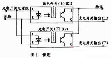 加鎖狀態下,計算機檢測光電開關輸出(上)信號,若為低電平,則輸出加鎖控制信號到電機,控制凸輪向上運動,擋片(圖1中虛線所示)隨凸輪運動逐漸擋住光電開關(上)發光部分,K1停止工作,光電開關輸出(上)變為高電平,即加鎖到位信號,控制計算機接收高電平并撤銷對電機的控制信號;解鎖狀態下,計算機檢測光電開關輸出(下)信號,若為低電平,則輸出解鎖控制信號到電機,控制凸輪向下運動,擋片隨凸輪運動逐漸擋住光電開關(下)發光部分,K2停止工作,光電開關輸出(下)變為高電平,即解鎖到位信號,控制計算機接收高電平并撤銷對電機的控制信號。