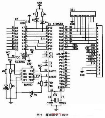 當信號D0-D5為10000時,單片機通過P10口對方位鎖定機構發出加鎖命令,控制命令經SN54LS245驅動后作用于R9和VQ1,VQ1導通后,繼電器K2的4、5導通,輸出+28 VLOCK信號控制電機進行加鎖。完全鎖定后,光電開關輸出(上)信號輸出高電平即圖3中STOP+,STOP+通過上拉電阻R16作用于R10和VQ2,VQ2導通后,繼電器K3的4、5和8、9導通,+28 V LOCK信號切斷,硬件上先停止加鎖控制,防止造成機構硬件損傷。而K3的8、9導通后,FWH+輸出+5 V電平給單片機,單片機接收信號后,終止加鎖命令,VQ1截止,K3恢復常態。解鎖過程和加鎖過程類似,在此不作贅述。