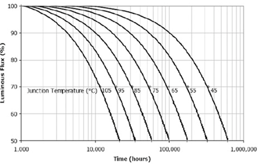 3.1 LED結(jié)溫升高以后首先帶來的是光輸出降低