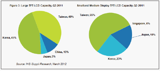 據IHS iSuppli公司的顯示材料與系統服務,只有5%的大尺寸LCD面板產能和18%的中小LCD面板產能位于日本。