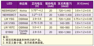 表:幾種不同的LED的特性參數