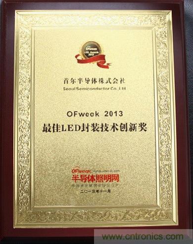 首爾半導體榮獲OFweek?2013最佳LED封裝技術創新獎