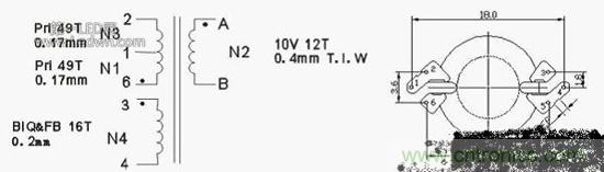 采用3x3WRM6變壓器,變壓器原理圖如下: