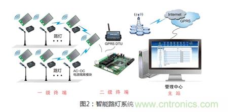 那么路燈是如何控制亮度協(xié)調(diào)工作的呢?下圖則是路燈控制系統(tǒng)的整體系統(tǒng)示意圖,在每個路燈節(jié)點上由一級終端設備將路況和環(huán)境信息通過ZigBee無線傳送給二級終端ZigBee集中器,通過它將信號轉(zhuǎn)為公網(wǎng)用的GPRS信號,最終傳遞給我們的管理中心,管理中心人員根據(jù)傳回來的信號,做出相應的控制,調(diào)節(jié)每個節(jié)點的亮滅及亮度。