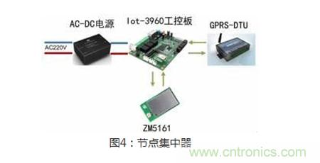 這就是二級終端ZigBee集中器,它由ZM5161模塊,Iot-3960工控板和GPRS-DTU組成,主要用來實現(xiàn)ZigBee信號與GPRS信號的轉(zhuǎn)換,通過公網(wǎng)傳輸給控制中心。
