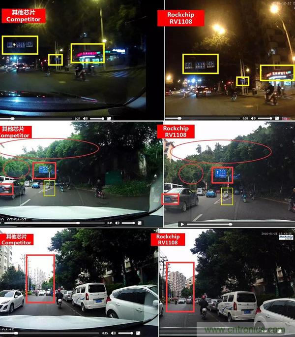 CES2017,瑞芯微Rockchip公布了三段基于RV1108視覺處理芯片平臺與同類解決方案的對比視頻。在夜視、逆光、清晰度多情境下,凸顯出RV1108圖像處理在“寬動態”上的畫質優勢。