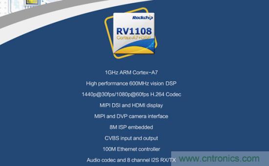 資料顯示,智慧視覺開發平臺RV1108,內嵌高性能DSP,具有智能圖像處理等關鍵技術,在嵌入式系統中實現了高能效智能視覺和圖像感知的革命性進化。