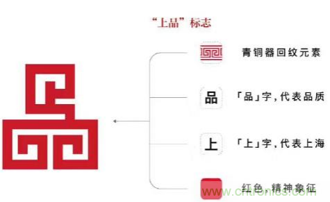 “上品”的“品”代表品牌。中國瑰寶之一的青銅回紋元素構成的“品”字輪廓,以及紅色的大膽應用,充滿了中國古典韻味,象征著對中國傳統工藝的致敬與傳承。不斷傳承至今的匠心精神,不斷對品質的卓越追求,不斷對品格態度的專一秉持,不斷對品牌文化的堅定認同,這才是“上海品牌”的精神象征。