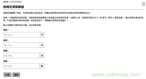 此外,Digi-Key也提供了一個歐姆定律換算器為客戶提供方便。