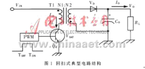 回掃式拓撲電路結構無疑是目前比較理想的多路供電電源電路結構。其峰值電感電流可檢測、輸出電壓擴展性強等特點,極大地提高了控制電路的穩定性和抗干擾能力,便于供電電源的設計。
