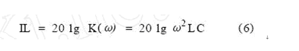 對于小功率的電子設備而言,LmaxCy,max的值通常為100μHμF,這是一個非常小的數值。以單級LC濾波器為例,為簡化分析,用電壓衰減來代替插入損耗,可得此時插入損耗為: