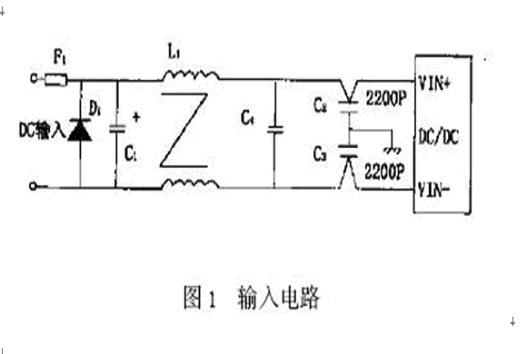 用DC/DC轉(zhuǎn)換模塊設(shè)計(jì)的二次電源典型輸入電路如圖1所示,主要包括輸入保護(hù)電路和濾波電路。