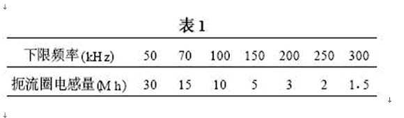 L1用于濾除低頻共態(tài)噪聲,它的磁芯一般采用高頻鐵氧體磁性材料。由于鐵氧體磁性材料沒有渦流的影響,高頻率仍能保持較高的導(dǎo)磁率,缺點(diǎn)是弱磁場(chǎng)容易飽和,但是L1在繞制時(shí)采用雙線并繞的方式,即在一個(gè)閉合磁路的磁芯上繞制相同電感量的兩個(gè)繞阻,電源電流經(jīng)兩個(gè)繞阻產(chǎn)生相反磁通,相互抵消,防止磁芯飽和。對(duì)于共態(tài)噪聲。互感系數(shù)產(chǎn)生磁通相互增強(qiáng),即電感量增強(qiáng),能很好的抑制共態(tài)噪聲。L1的共態(tài)扼流圈的電感量一般由所要抑制的噪聲電平的下限頻率(DC/DC轉(zhuǎn)換模塊的基波頻率)確定,下限頻率越高,所需要的電感量越小,粗略對(duì)應(yīng)值見表1。
