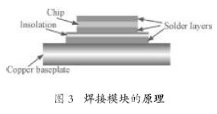 將一個硅片裝配和連接到一個器件上有不同的方法。在許多模塊中,硅片被焊在兩側(陽極和陰極側),并且是單面冷卻。常用的焊接模塊的原理如圖3所示。