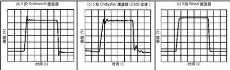 圖3  Butterworth (a)、Chebyshev (b)和Bessel (c) 低通5階濾波器的時間響應|