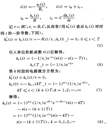 由于電子開關周期性切換,RC電路對外電路的影響表現為:下一時段的輸出電壓初值是上一時段末時刻輸出電壓值乘(-1),即: