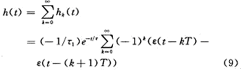 由式(8)可見,第k段的非零值時區為(kT,(k+1)T_),即各時段非零值區間互不重疊,對hk(t)關于k求和,得開關電容電路(對外)的單位沖激零狀態響應h(t)為: