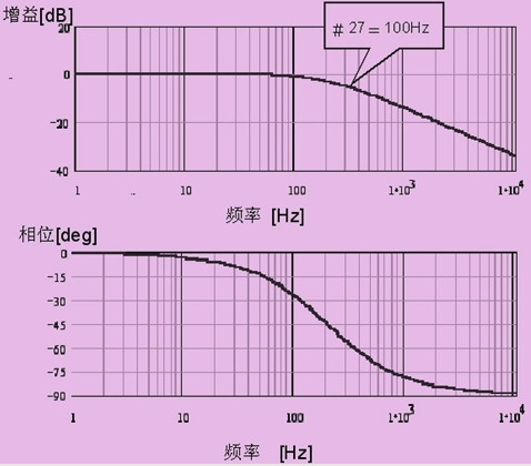 速度反饋濾波器也為一階延遲濾波器,這是一個純粹的慣性環節,相移趨于90°。在高頻時增益小,當高頻處有幾個諧振點時適用。增益在-3db規定為帶寬頻率,設置范圍從50~1000hz(見圖3)。注意使用時相移可到90°,可能會發生相移引起的振蕩。