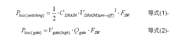對于功率低于75 W的適配器而言,在工作能效提升方面,首先就需要考慮其損耗來源。事實上,其損耗主要包括兩個方面,分別是開關損耗和門電荷(Qgate)損耗,這兩類損耗分別可以用等式(1)和等式(2)來量化: