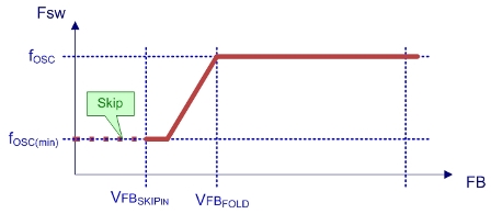 圖1:NCP1237/38/87/88在輕載時采用頻率反走技術降低開關損耗