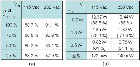 表2:NCP1380谷底開關控制器的工作能效及待機能耗(a、工作能效;b、輕載及空載能耗)