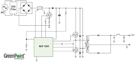 圖3:安森美半導體基于NCP1901組合控制器的90 W筆記本適配器參考設計。
