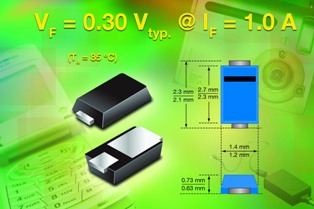 日前,Vishay Intertechnology宣布,推出兩款新型肖特基整流器 --- MSS1P2U和MSS1P3U,在+85℃和+25℃時的前向壓降分別只有0.35V和0.4V。器件采用小型MicroSMP功率封裝,額定電壓分別為20V(MSS1P2U)和30V(MSS1P3U),輸出電流為1A,Vishay此次推出的新型器件的高電流功率密度和低熱阻有助于實現(xiàn)節(jié)省空間的設計。