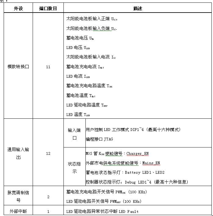 整個(gè)控制器的控制是通過(guò)一個(gè)MCU來(lái)實(shí)現(xiàn),MCU的主要工作包括以下幾點(diǎn):一是采用MPPT算法來(lái)優(yōu)化太陽(yáng)能電池板工作效率;二是針對(duì)蓄電池不同狀態(tài)采用合適的充電模式;三是保證LED驅(qū)動(dòng)電路的恒流輸出;四是判斷白天黑夜并以此來(lái)切換蓄電池充電和放電模式;最后就是提供監(jiān)控保護(hù)、溫度監(jiān)測(cè)、狀態(tài)輸出和用戶控制輸入檢測(cè)(DIP1~4)等功能。MCU的選擇最主要是滿足ADC、GPIO和外部中斷的需要,不需要單純追求速度。表1列出了實(shí)際電路中MCU外圍設(shè)備的使用情況,考慮到以后擴(kuò)展的需要,主控芯片使用STM32F101RXT6 (意法半導(dǎo)體最新款STM32系列MCU,采用Cortex-M3內(nèi)核)。