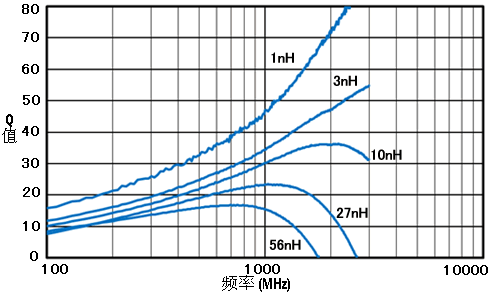 原件特性圖請參看下方:電感量/頻率 圖, Q值/頻率 圖