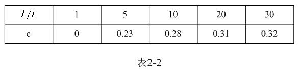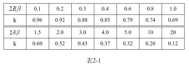 【說明】上式是用來計算多層線圈繞組、截面為圓形的空心線圈的電感計算公式。長岡系數k可查閱表2-1,系數c可查閱表2-2。當線圈內部有磁芯時,有磁芯線圈的電感是空心線圈電感的