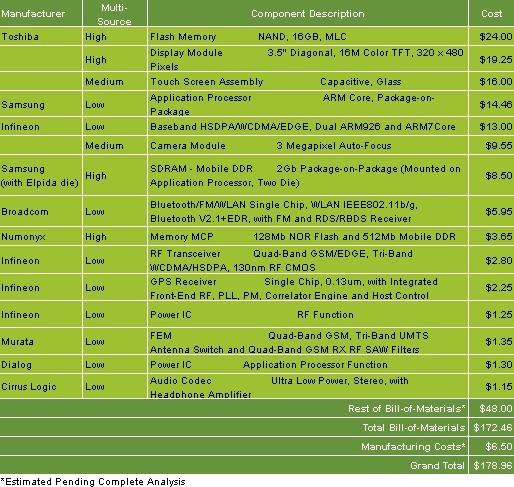• iSuppli拆機分析iPhone 3G S的材料及制造成本為178.96美元