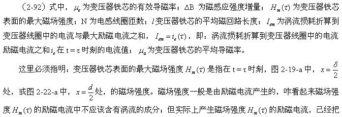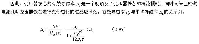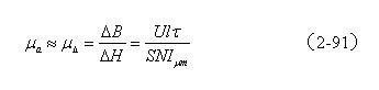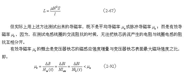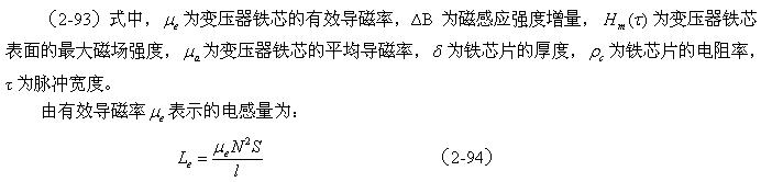(2-91)式中,為開關變壓器的平均導磁率;為脈沖變壓器的脈沖導磁率,或脈沖靜態磁化系數;為在某測試脈沖電壓幅度和寬度的條件下,開關變壓器鐵芯中的磁通密度增量;為在某測試脈沖電壓幅度和寬度的條件下,開關變壓器鐵芯中的磁場強度增量;