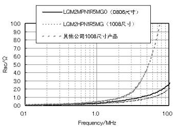 如同圖4中顯示的Rac特性,LQM系列產品能夠充分抑制Rac。同時,圖2的電流-感值偏執特性中顯示,它在電流通電時也能確保高感值,擁有良好的電力變換效率特性。這些性能能夠實現手機在待機狀態下的高電力變換效率,對延長電池壽命做出貢獻。