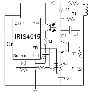 圖4由IRIS4015構成的QR/PWM反激式電源電路