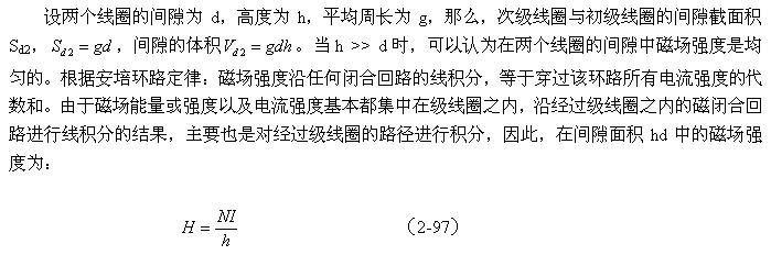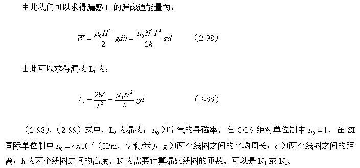 如果我們拿(2-99)式與(2-67)式或(2-94)式進行對比,可以看出,線圈漏感與線圈的電感是沒有本質(zhì)區(qū)別的,只是磁路和磁通密度以及介質(zhì)導(dǎo)磁率等參數(shù)需要根據(jù)實際情況來決定。