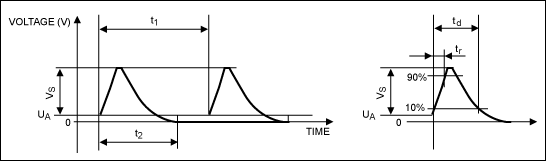 典型的汽車電池電壓范圍為9V至16V,發(fā)動機關(guān)閉時,汽車電池的標(biāo)稱電壓為12V;發(fā)動機工作時,電池電壓在14.4V左右。但是,不同條件下,瞬態(tài)電壓也可能達(dá)到±100V。ISO7637-1行業(yè)標(biāo)準(zhǔn)定義了汽車電池的電壓波動范圍。圖1和圖2所示波形即為ISO7637標(biāo)準(zhǔn)給出的部分波形,圖中顯示了高壓汽車電源轉(zhuǎn)換器需要滿足的臨界條件。