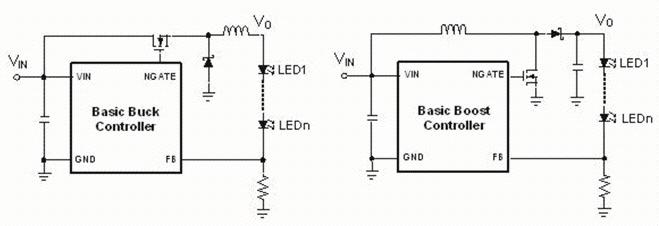由于Boost和Buck-boost調(diào)節(jié)器的高度復(fù)雜性及其外圍電路、低效(特別是Buck-boost)和控制拓?fù)涞倪x擇不足,致使它們都不是轉(zhuǎn)換LED驅(qū)動(dòng)的首選。但是它們都是LED越來越多的照明應(yīng)用必不可少的。某些系統(tǒng)結(jié)構(gòu)可以用buck或者甚至是線性以調(diào)節(jié)器為基礎(chǔ)的LED驅(qū)動(dòng)來替代。比如類似于街燈的大型光源需要一百甚至更多的1W+LED。一般來說,針對(duì)通用照明的LED從低功耗走向高功耗,并且在其中間舞臺(tái),比如汽車前燈和小型光部件,boost和buck-boost調(diào)節(jié)器代表了常電流驅(qū)動(dòng)的最佳選擇。