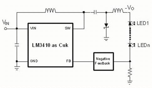 很少被用作電壓調(diào)節(jié)的Cuk轉(zhuǎn)換器作為L(zhǎng)ED驅(qū)動(dòng)而嶄露頭角。輸入和輸出電流都是連續(xù)的。輸出電壓的極性就像高端buck-boost一樣被反置,但是輸出電容像buck轉(zhuǎn)換器一樣被消除。除Buck-boost和boost以外,Cuk是擁有這種能力的唯一的實(shí)用型非隔離調(diào)節(jié)器。