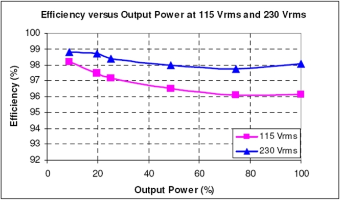 經測試,這原型在90Vrms、滿載、無風扇(機箱打開,室溫)條件下的能效達94%,而在100Vrms時達95%。在20%負載時能效更接近或超過96%。這種無橋PFC架構將是適合大功率應用的一種極高能效的解決方案。