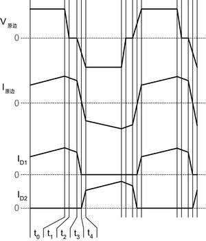 將ZVS全橋轉換器的相移操作分為五個時序子集,以此來介紹完整的電源轉換周期,如圖1所示。