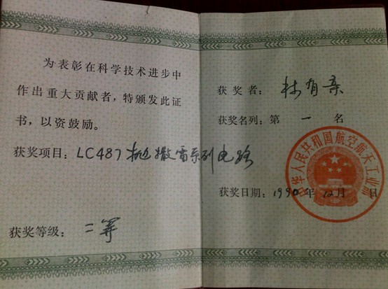 林有親先生的榮譽證書