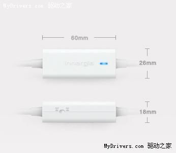 該充電器叫作“mCube Mini”,號稱全球最小的筆記本/手機旅行充電器。這個白色的小家伙長度和寬度分別只有60毫米和26毫米,厚度也不過18毫米,重量僅為67.5克(不含線纜),放在掌心里都不顯大。