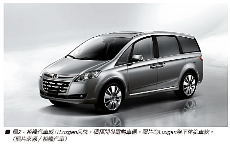 大陸汽車市場才正開始起步,臺灣電子廠商也正等待這個被預測將在 今年有近17.8%車用半導體成長的機會,畢竟臺灣錯過早期內燃機發展,現在要從頭接軌車用電子產業,唯有大陸市場是較有機會的;另外,電動車亦是臺灣廠商的新機會,從兩輪輕載具,到四輪車,臺灣廠商擁有良好的電樞馬達基礎,以及相關控制的產業技術,并且當走到純電動車這一步,許多內燃機的車輛設計概念將被顛覆,臺灣廠商也有個全新的開始可以跨足汽車產業。例如裕隆汽車就重啟品牌大夢,在推出第一臺內燃機休旅車后,積極打造電動車。(圖2)
