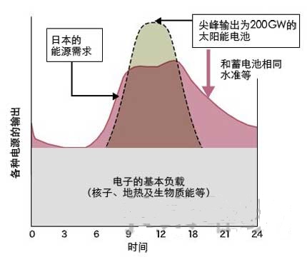與市電同價(jià)的太陽(yáng)能很可能加快引進(jìn)在工廠和其他企業(yè)設(shè)施中,使它得以符合或超過日本政府的“2020年以前28GW,2030年以前53GW”的目標(biāo)。日本新能源產(chǎn)業(yè)技術(shù)綜合開發(fā)機(jī)構(gòu)(NEDO)推出的太陽(yáng)能電池采用預(yù)測(cè)(如出版PV2030)中預(yù)估在2030年前將安裝高達(dá)201.8GW容量。此數(shù)字假設(shè)最大的采用率,每隔一間工廠20%的屋頂面積及所有房屋的1/3都裝有太陽(yáng)能電池。