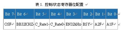 DS3232/DS3234在用戶可編程寄存器中提供了一個域,允許用戶延長溫度更新的時間,從而降低平均電流損耗。兩款器件在控制/狀態寄存器中提供C_Rate位,用來設置四種不同的溫度更新周期。寄存器定義如表1所示。