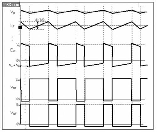 圖2采用降壓拓?fù)浣Y(jié)構(gòu)的開(kāi)關(guān)電源的開(kāi)關(guān)動(dòng)作波形圖