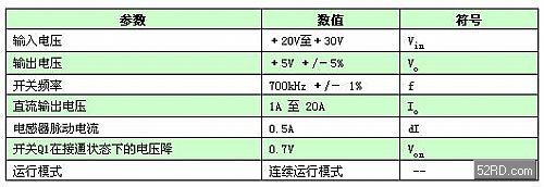 表1 典型的降壓電源系統(tǒng)技術(shù)規(guī)格