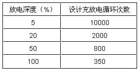 蓄電池的壽命一般是這樣定義的,浮充狀態下為3-5年或3-8年,并不是說蓄電池在頻繁放電狀態下使用多少年。對處于非浮充狀態下工作的蓄電池,其壽命是按照循環放電次數和放電深度兩個因素衡量,如表1所示。簡單地以能使用多少年來衡量,是不正確的。