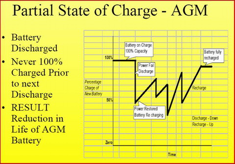 對于蓄電池的循環放電次數來說,必須是在蓄電池放電后充足電能,要充足電能充電時間至少需要24小時(依據YD/T799-2002的規定)。對于充電不足的情況,其循環放電次數很難確定,肯定要低于表1中描述的數據。