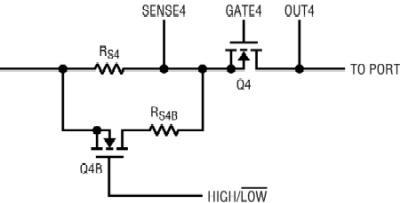 當Q4B關閉的時候,端口工作在符合802.3af標準的模式。打開Q4B開關,端口就工作在大電流模式。這種切換可以在任何時間進行:在檢測/分類之前;在檢測/分類之后,但是要在端口上電之前;或在供電之后。注意,Q4B可以采用低壓MOSFET,因為僅僅Q4的漏極具有高端口電壓。Q4B要選擇導通電阻非常低的MOSFET,以防止在更大電流限制中精度不夠。例如,IRLML2502就是采用SOT-23封裝的一種合適的器件。